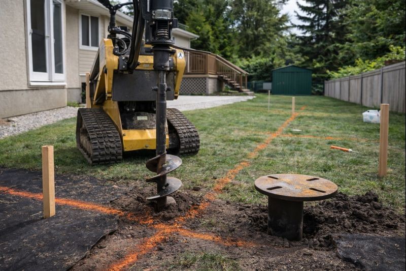 We install CCMC certified screw piles to verified depth and torque so your foundation stays stable through freeze and thaw.